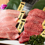 松阪牛に特化した店だからこそ、外せないのが「特上ロース」。個体識別番号つきの血統が、おいしい焼肉への道しるべ。後ろ脚、モモ部分のトモサンカクは、見惚れるピンク色をした品のよい甘みのある霜降りが特徴。悶絶覚悟の松阪牛を求めて来訪する人も多いとか。