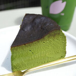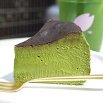 代官山から徒歩1分のオシャレカフェ。ワンちゃんも一緒に入れます。こちらのバスチーは抹茶の緑が美しい。見た目はトロトロですが、どの部分も濃厚なめらか。ふわりと香る抹茶感もあり、抹茶好きにもオススメの濃厚バスクチーズケーキです。プレーンと抹茶の2種類はどちらも自家製なので早めの来店がオススメです。