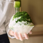 カウンターの目の前でかき氷が出来上がっていく様子を楽しめる