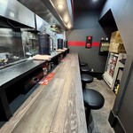 場所はJR蒲田駅から2分ほどのところにある「くいだおれ横丁」と呼ばれる細い通りの両側に、飲食店がひしめくエリア。おなじみのポップでカラフルな「crab台風。」の旗が目印です。席数はL字形カウンター8席。人気ラーメン店とあって、オープンして間もないのに大勢の人が訪れています。