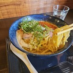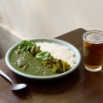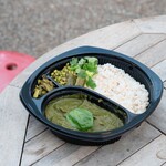 牛すじグリーンカレーはタイ料理のゲーンキョウワン(グリーンカレー)に近いココナッツミルクとハーブの利いたカレーなのですが、タイと違うのはそこにほうれん草やニラが使われているということ。特にニラの風味が程よい隠し味となっていて個性あるおいしさに仕上がっていました。トッピングのチキンカツも塩麹によって柔らかくなっていて食べやすく、満足度も上がります。