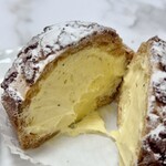 外側がモンブラン。内側は上が生クリームで下がスポンジに洋酒漬けレーズンが入っていました。