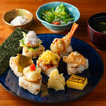 ・天むすプレート 6個1500円(サラダ、小鉢、味噌汁つき)
