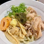 トッピングもユニーク。九条ネギ、穂先メンマといったラーメン定番のトッピングに、豚バラ肉、糸切り昆布、海老風味の輪切りのちくわをプラス。うどん店のニュアンスが感じられる一杯です。現在営業は週2日のみですが、来年には営業数を増やす予定だそうです。
