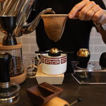 カウンター3席、テーブル2卓、そして奥の壁沿いにもカウンターが6席で、店主がひとりで営んでいます。豆は6種類あり、深煎りでおいしいものをとリクエストすると、インドネシアのマンデリンを薦めてくれました。