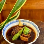 最初にカシラ(豚のコメカミ)の串焼きが出て、こちらに特製みそだれを塗って食べます。そして何も言わない限り、延々とカシラだけが出続けるのです。串焼きは野菜も含め9種類あるのですが……。