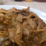 まずカレーだけ食べてみると、もったりした濃厚なテクスチャのルウは先述したように意外なほどスパイシー。このカレーだからこそ甘めの味付けで仕上げられた豚のしょうが焼きとの相性がとても良いのです。