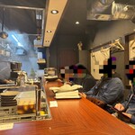 人気ラーメン店が多数あり激戦区として知られる亀戸ですが、ラーメン店は繁華街のある亀戸駅北口に集中していたので、落ち着いた住宅地の東口にあるこの場所なら、地元の方々に愛されるお店を目指すには良いと思い、この場所を選んだそう。外観は真鍮表札の専門店に依頼した表札と、ロゴデザインを制作してもらったという白い暖簾がお洒落で、一見ラーメン屋に見えない落ち着いた雰囲気。木の引き戸を開けると、清潔感のあるお洒落な店内にL字形のカウンターがあり客席は8席です。