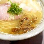 「醤油」のスープは小豆島、滋賀、島根、糸島などの醤油11種類をブレンドしているそう。鶏のおいしさが前面に出てコクがあり、飲み干してしまうおいしさです。「塩」は塩ダレに高級料理酒「蔵の素」を使用し、貝だしのうまみが溢れ滋味深い味わい。基本的なスープは一緒ですが、醤油と塩で全然印象が違うので、是非食べ比べてみてください。