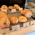 他にも「明太子」380円や「チョリソー&ハニーマスタード」420円など、朝食やランチ、ワインのお供にもなりそうなものや、「チョコココナッツクランベリー」420円、「柚子クリームチーズ」420円などのスイーツベーグル、「あんバターサンド」400円、「コーヒーラムレーズンチーズケーキサンド」600円などのサンド系ベーグルも並びます。