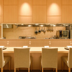 店舗は通路に面して格子戸が設けられ、格子越しに洗練された和の雰囲気がうかがえ、明るく開放的な雰囲気があります。席はカウンター席、テーブル席あわせて21席。落ち着ける半個室も備えられ、気軽な会食だけでなく接待などにも利用できそうです。