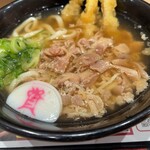 メインメニューのうどんは、鯖や昆布・椎茸などから丁寧にとった黄金の出汁が味の決め手。やや濃いめの味つけと、九州の甘い醤油を使用したほんのり甘さの残る風味が特長です。