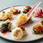 9種が一皿に盛られた前菜や、季節の春巻き(この日はラフランスとタレッジョチーズ)、驚くほど滑らかな自家製豆腐と上海蟹味噌の麻婆豆腐といった名物のオンパレード。15品を、15,000円で味わえる充実感はたまりません。