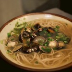 「新作なんです」と葭多さんがおすすめしてくれたのが「すばのお出汁で炊いたご飯」。だしの風味がふわりと香るご飯は、コクのあるバターを混ぜていただいても美味。「例えば肉そばの肉をのせたら牛丼に、天ぷらをのせたら天丼に。食べ方のバリエーションも楽しめますよ!」とのこと。日々進化するメニューで、さっと食べてさっと出る、いわゆる立ち食いそばのイメージを超えた、食時間を楽しめる一軒だ。