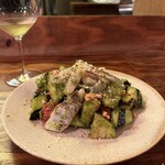 「私たちが作る料理は素材を活かした素朴なもの。二人でレストランをオープンしたいと思ったときに、ブドウの味がそのまま出たような自然派ワインと合わせたい思ったのは、自然な流れでした」と宜子さん。アラカルトは素材を活かしたボリュームたっぷりの料理が中心で、コース(5,500円、2名〜)は前菜や魚料理、肉料理など5〜6皿が少しずつ食べられるようになっている。