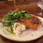 イノシシのパテ・ド・カンパーニュに合わせたいのは、フランスのオーヴェルニュで造られたロゼスパークリング。「かつおだしのような味わいのある落ち着いたロゼワインです。軽めの泡だちのペティアンなので、乾杯からパスタまで幅広く合わせられます」と宜子さん。シャガットでは幅広く素材の良さを引き出すおおらかな自然派ワインを用意。食事になじむおいしさが心地よい組み合わせだった。