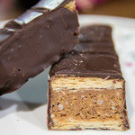 多彩なドイツ菓子がそろう「ホレンディッシェ・カカオシュトゥーベ」。銀座三越店限定の「銀座ミルフィーユクランチ」は、クランチとヘーゼルナッツクリーム、サクサクのパイを重ね合わせ、スイートチョコレートでコーティングしたもの。ナッツとチョコが合わさったミルフィーユは濃厚な味わいで、少量でも満足の食べ応えです。スイートチョコレートが甘さ控えなので、クランチやナッツの香ばしさが引き立ちます。人気ブランドの限定品は、チョコレート好きへのギフトにおすすめです。