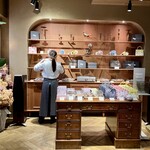 店内はブラウンを基調にしていて、木の温もりを感じる落ち着いた空間です。アンティークのエレガントなランプやドライフラワーが、お洒落な雰囲気を演出。ショーケースにはケーキや焼き菓子が並び、どれもおいしそうで見ているだけでワクワクします。