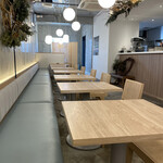 2024年12月には2号店として「ØC tokyo 井の頭公園店」がオープン。テーブルの脚に塗られた北欧らしい鮮やかなブルー、打ちっぱなしのコンクリートも本店同様。一人でも過ごしやすいカウンター席や、グループ用のテーブル席など客席は全28席です。居心地の良いテラス席も設けられているので、暖かくなったら公園の景色を眺めながらくつろぐのもいいですね。