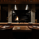 コースのクライマックスは、〆の「そぼろご飯」に使うそぼろを炒る光景だ。薪火に直接、鶏ひき肉をあてて焼き上げるという調理法は斬新であり、迫力満点。店内には香ばしい香りがたちこめ、そぼろから滴る脂に赤い炎が上がる。そのダイナミックな調理法にゲストは圧倒されるのだ。