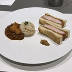 入口はガラス張りで中央にオープンキッチン、左右に長テーブルの店内は空間に余裕があってスタイリッシュ。料理は銀座らしく「洋食」なのですが、店名通りすべて1/2のサイズ。1人前の約1/4サイズの料理を2品盛り付けたプレート料理です。「定番アップライジング」はハヤシライスとエビフライ、「カツカツ交差点」はカレーとカツサンドなど、メニューは10種あり、すべて1,650円。もちろん現代風にアレンジされていて、お皿ごとにその料理に関するエピソードが書かれた紙のマットが敷かれます。