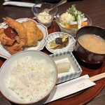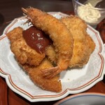 「有頭エビのエビフライってごちそう感があってテンション上がりますよね!」と手嶋さん。たっぷりのタルタルと生野菜と一緒に。車エビや赤足エビをフライにすることも。