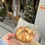 看板メニューの「バゲット」378円は、北海道産小麦を使用し気泡があいた軽い食感。ハーフサイズでも購入できます。豚肉とトマトと玉ねぎが入っていて、香辛料がフワッと香る「ミートパイ」や、サクサクのパイ生地にハムとチーズを挟み、ホワイトソースとシュレッドチーズで焼き上げる「クロックムッシュ」など、惣菜パンも豊富。近くにあったら通いたくなるような素敵な新店です。