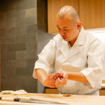 自慢の握りは、淡めな赤酢と粒立ちの良い米で作るシャリを使い、ネタの鮮度や脂のノリ、ゲストの年齢や食べるスピードなどを考慮しながら、サイズや温度設定まで細かく気を配ります。店主 齊藤氏のほどよい距離感の接客も心地よく、接待やデート、記念日など大切な日に訪れたい素敵な新店です。