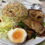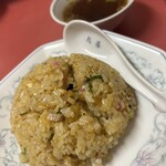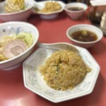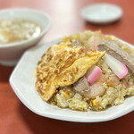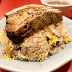 チャーシューと赤い挽肉が入っているのが特徴的なこちらの炒飯。客の多くが「半チャーハンラーメン」を注文します。挽肉は食紅を使い赤色に仕込んでおり、チャーシューと挽肉のダブルの肉が楽しめる炒飯です。価格も両親的で、庶民の味方とも言える町中華。