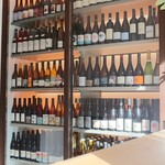 入口付近にあるカウンターとワインセラー。カウンター席はワンちゃん連れでの入店も可能