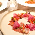 ディナータイムには、まるで旅先で出会うような、多彩で個性豊かな創作料理を用意。魚介のうまみが詰まった「特製アクアパッツァ」2,400円や、じっくりと煮込まれた軟らかくてコクのある「牛タンのホロホロ赤ワイン煮込み」3,300円など、見た目も美しく、おいしい料理をアラカルトで提供します。