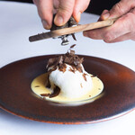「Miyazaki」を訪れたら、ぜひ味わいたいのがディナーコースに用意されている「キャビア・オシェトラ ウッフ・ア・ラ・ネージュ」。宮崎シェフのスペシャリテで、フワフワのメレンゲの上にキャビアをのせ、メレンゲの中にベルモット酒のバターソースとカリカリのクルトンを忍ばせています。