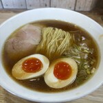 自家製の細麺は張りがあり麺線がきれいに整えられていてご主人の丁寧な仕事を感じさせます。チャーシューのスモーキーな香りがまたたまりません。