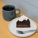 大きな窓から光が差し込むカフェスペースは、シンプル&カジュアルなインテリアでのんびりとした雰囲気。お菓子と一緒にドリンクも楽しめる。「コーヒーはミャンマーのもの。現地の自然環境や、女性が働きやすい労働環境に配慮したシステムのもとで作られています。紅茶は沖縄県産で、他にシークヮーサーのレモネードなどもお出ししています」