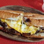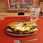 店名にも冠されている「チーズステーキ」1,300円は、パン、チーズの一体感がたまらなく、見た目ほど重くなくペロリと食べられます。本場のアメリカ人観光客からも「フィラデルフィアで食べるよりおいしい」と絶賛されているそう。ドライブスルーではありませんが、店舗前に車を付けると車まで商品を届けてくれるサービスも。車でのお出かけのお供にもよさそうです。