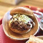 看板メニューは中東発祥のスパイスを利かせたひよこ豆のコロッケやフムス、旬の野菜をサンドした「ファラフェルサンドイッチ」1,400円。動物性食材不使用で、ヴィーガンの方でも食べられます。ボリューム感が欲しい人には、オリジナルケイジャンスパイスとハーブ、バターミルクに漬け込んだジューシーな味わいのフライドチキンが入った「スパイスフライドチキン・ニューオリンズ風」1,500円もおすすめです。フレンチシェフが作るピタサンドに、お腹も心も満たされること間違いなし。