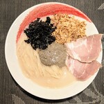 また、ランチタイム限定で、蟹3種(紅ずわい蟹、渡り蟹、花咲蟹)と豚のコラーゲンと香味野菜を5時間炊き上げた、トロみのある白湯スープの「濃厚蟹そば」1,000円を提供、ディナータイム限定で、蟹出汁と鶏出汁を合わせ、更にトマトを加えた特製ソースがベースの洋風テイストな「蟹とトマトのまぜそば」1,000円を提供しています。「蟹とトマトのまぜそば」は「ガーリックトースト」150円と一緒に楽しむのがおすすめです。