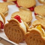 ホワイトチョコレート使用のコク深いバタークリームと、旬のフルーツをタルトクッキーで豪快に挟んだ「完熟いちごのフレッシュバターサンド」「金柑コンポートのフレッシュバターサンド」各390円も人気。滑らかな口どけと、ほろほろで香ばしいクッキーとジューシーなフルーツの豊かな食感が楽しめます。食べた人に幸運が訪れるようにと願い、まるまる太ってふっくらした、豊かさや幸運の象徴「ふくら雀」をモチーフにしたそう。大切な方への手土産にもぴったりの商品です。