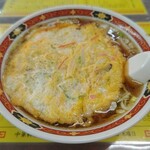 町中華オムライスのソースには「ケチャップ」が採用されることが多いですが、こちらは特製の味噌風味デミグラスソースがたっぷりとかかっており、自家製チャーシューを具材に使っているのが特徴。プレートには生野菜のサラダも添えられ、見た目にも華やか。町中華らしさと洋食のエッセンスが融合した、ボリューム満点の一皿です。