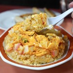 地元で長年愛される老舗で、五目チャーハンが名物の町中華。チャーハン同様に、オムライスも卵と米を使う料理なので「チャーハンの名店は100%オムライスもうまい」という、確かな方程式が存在します。鶏肉がゴロゴロ入ったケチャップライスと薄焼き卵で、酸味よりもうまみがしっかり表現されたオムライスです。