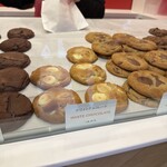 店に並ぶクッキーはその日に店舗のキッチンで焼き上げたもので、焼きたてのクッキーを最高の状態で味わうことができます。チョコレートはベルギー産を使用し、保存料、着色料は無添加。しっとりソフトな生地に、チョコレートチャンクやナッツ、ドライフルーツなどの具材を混ぜ込んだホームメイドタイプのクッキーは、手のひらサイズと大ぶりです。種類も豊富で好みの味が見つかるはず!