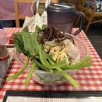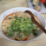 私が新小岩に住んでいた幼い頃からあるルミエール商店街。その思い出の地にひっそりと佇む麻辣湯専門店。メニューは、麺5種(春雨、板春雨、刀削麺、中華麺、韓国インスタント麺)から選べ、トッピングは3品で880円。替え玉、麺大盛りも130円ででき、辛さは10段階から選べる。10辛は、白濁の豚骨スープにビビッドなオレンジがかった麻辣の辛さがのしかかって癖が強い。おすすめは、肉々しい具や太めな板春雨など、癖の強いスープとの釣り合いが取れる組み合わせ。また鎮江香醋、すりごま、花山椒、ニンニク、ゴマダレで味変可能なので、最後の一口まで虜になる。