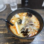 ガチ中華激戦区で、串串香や鴨料理といった本場の料理を提供。イチオシの麻辣湯は、鶏ガラと豚骨と漢方から丹念に仕込んだ身体に優しいスープが特徴。十数種類の漢方調味料と北海道産粉ミルク、特製辣油を加え、山椒を強調しつつも全体に角のないスープに仕上げている。麻辣湯は、605円で50種類以上の具材から好きなトッピングが3品まで無料、麺は1人前でスープも無料。辛さは3段階(小辛・中辛・大辛)。大辛を選ぶと、クリーミーなスープに深みがある辣油の辛さと、メリハリがあって良い。後から黒酢を加えると、気分爽快に。