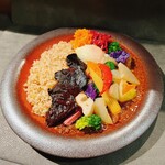 使っているスパイスは13種類にもわたります。また、牛骨や香味野菜をじっくり炒め焼きにして煮出した「フォン・ド・ヴォー」をさらに煮詰めて作る「グラスドビアン」がベースになっているのも特徴のひとつ。そこに、牛と豚のバラ肉を炒め、6時間ほどゆっくり炒めて水分を飛ばした香味野菜、あめ色玉ねぎを合わせて作ります。完成するまでにはなんと5日もかかるのだとか……!