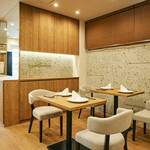 清潔感のある白を基調とした店内は、ゆったりと寛げる15席。前店から共に働くスタッフも多く、料理の流れもとてもスムーズです。11,000円からのランチコースがあるのもうれしいですね(サービス料別)。