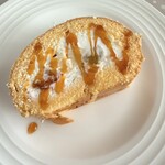 毎年人気の、桃とヴェルヴェンヌ(レモンバーベナ)というハーブを使ったプチガトーです。下部はヴェルヴェンヌが香るサクッとした食感のサブレ生地、中央には桃のクリームとジュレをまとった、みずみずしい桃のコンフィが潜んでいます。2025年8月末までの販売予定です。