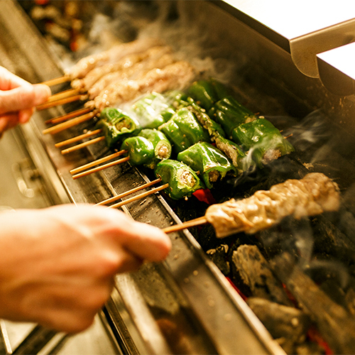 新宿で串といえばこちら!というほどの人気を誇る、もつ焼きの老舗「鳥茂」。昭和24年創業で現在は3代目主人・酒巻祐史氏が継承。ピーマンの肉詰め発祥の店としても知られ、伝統の味と進化し続ける技が堪能できる。“鳥”と店名につくが、焼き鳥ではなくやきとんがメイン。ぜひ食べてほしいのがレバー(500円)。その新鮮さとおいしさは、丁寧な処理や焼きのなせる業で、これ豚だっけ?と感動を覚えるはず。上シロや上タン(各1,200円)、上子袋(1,000円)など希少な上串焼きも揃い、カウンター席から感じられる、紀州備長炭から立ち上がる煙や焼き上げる音、食欲をそそる香りもご馳走だ。