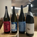 料理を受け止める日本酒は、すっきりした辛口がメイン。ワインや芋焼酎やウイスキーなども。
