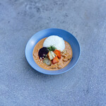「Toshi Yoroizuka」の「Fleur de Soleil(フルールドソレイユ)」も、旬のフルーツを贅沢に使っています。パイナップルとココナッツで夏の味を表現し、ライムとミントで爽やかな香りを添え、ヒマワリをイメージした見た目も夏らしい一皿です。
