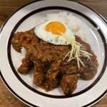 また、肉好きの要望にもしっかり応えてくれます。「カンチキカレー」1,300円はルウの中にチキンカツ。さらに「目玉焼き」200円、「ソーセージ」300円と、トッピングするほどに満足度も上昇します。